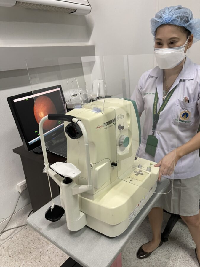 นายอมฤทธิ์ วีรชัยภักดี ผู้บริหารบริษัทสยามวิคเกอร์ จำกัด ออกแบบพร้อมติดตั้ง #ฉากกั้นอะคริลิค สำหรับเครื่องตรวจวัดความดันตาอัตโนมัติ และเครื่องถ่ายภาพจอประสาทตา ณ หน่วยตรวจจักษุวิทยา รับมอบโดย รศ.นพ. ธีระ กลลดาเรืองไกร ผู้อำนวยการศูนย์การแพทย์กาญจนาภิเษก รพ. ศิริราช