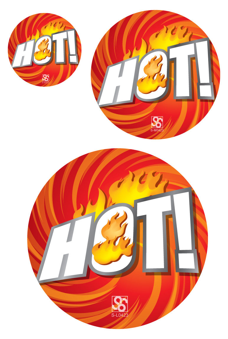 52003 L ป้ายกลม HOT ไฟ Size L (บรรจุ 10 แผ่น ต่อ 1 ห่อ)