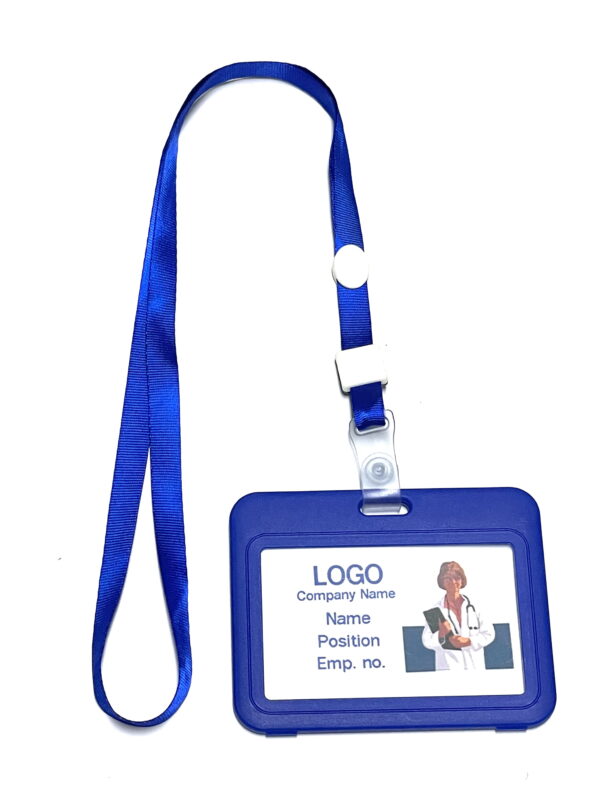ที่ใส่บัตรห้อยคอสีน้ำเงิน พร้อมสายคล้องคอ